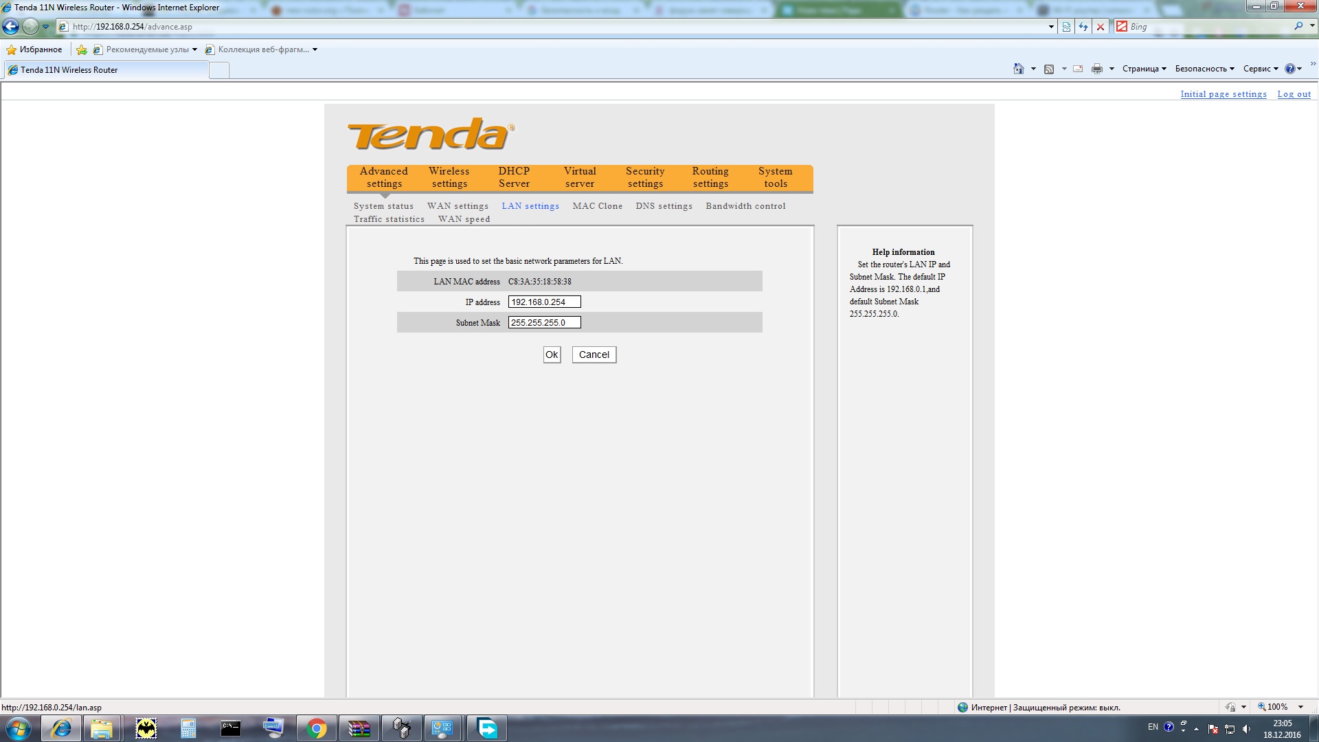 Далее на нашем старом вайфай роутере сбрасываем настройки по умолчанию. подключаем лан кабель в один из лан портов роутера и в нашу новую сетевую карту. В зависимости от модели(сзади на крышке роутера написан например 192.168.0.1) заходим по его адресу- откроется веб меню роутера. нажать Advanced Settings f2db4f6233f02c93bfecf000dc9dcfb0для захода в полные настройки. на закладке DHCP Server его выключить(снять галочку) в закладкеb4efc67f589d017427de5ab37456c638 LAN settings внести айпи 192.168.0.254 маску Subnet Mask 255.255.255.0 .нажать ок - роутер перезагрузится. на компе в центре управления сетями и общ доступом выбрать свое подключение, куда тыкнули кабель от роутера. клацаем по кнопке свойства потом на пункт в списке протокол интернет f814a659575f13956c9615f8b54d6af5