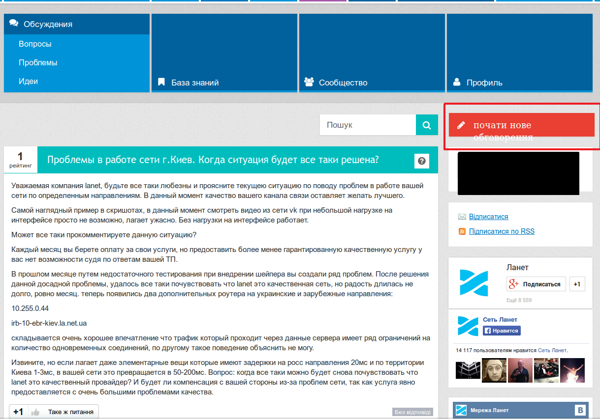 Извините, но если лагает даже элементарные вещи которые имеют задержки на росс направления 20мс и по территории Киева 1-3мс, в вашей сети это превращается в 50-200мс. Вопрос: когда все таки можно будет снова почувствовать что lanet это качественный провайдер? И будет ли компенсация с вашей стороны из-за проблем сети, так как услуга явно предоставляется с очень большими проблемами качества.