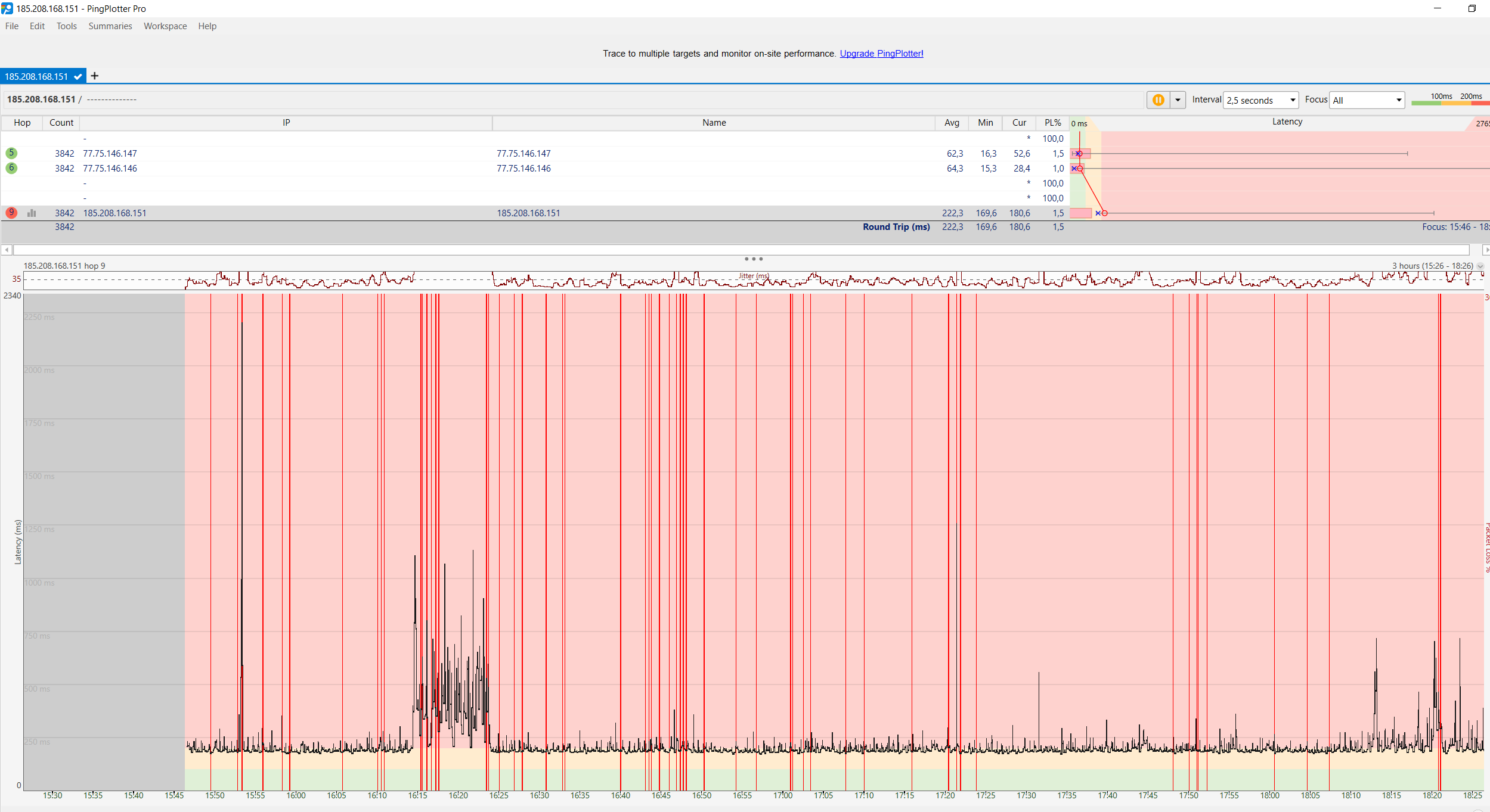 Для 185.208.168.151 прописали прямой маршрут через Fiord. Потерь больше не наблюдаем.